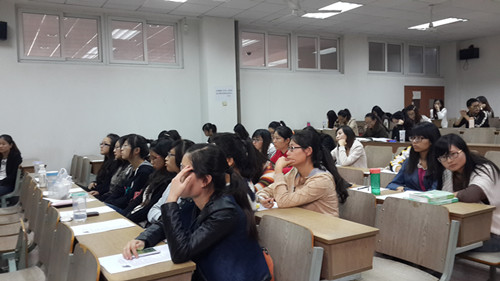 宣讲会开始,赵经理首先介绍了自身的工作经历,让同学们对人寿保险公司的企业情况有所了解;其次她详尽地介绍了保险业的就业前景并播放了公司的宣传视频,生动展现了保险行业的未来发展;然后赵经理就此次招聘会的岗位设置与人员需求,给同学们做了详细的解释和说明,最后人寿保险公司还为大家准备了抽奖活动并和前来应聘的同学进行深入交谈并解答相关疑问。