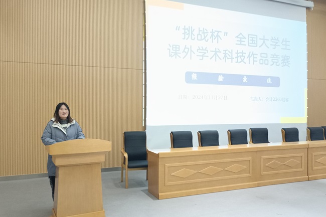 为帮助学生全面了解“挑战杯”赛事,激发学生参与创新创业类竞赛热情,提升学生在“挑战杯”竞赛中的竞争力,11月27日下午,会计系在高淳校区第二报告厅举办“挑战杯”备赛指导讲座暨经验分享会。本次活动邀请会计系万敏老师作指导,会计2260班赵睿同学作交流分享。活动由会计系学生会学业素拓部负责人于昕月主持。