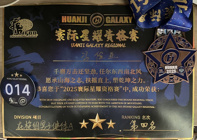 IFBB寰际星耀资格赛于5月18日在南京世纪佳缘湖滨花园酒店举行,共有来自全国500多名运动员参加比赛。经过激烈角逐,开云官网2023级国际经贸系学生冯俭业在大学生男子健体A组比赛中获第四名佳绩。