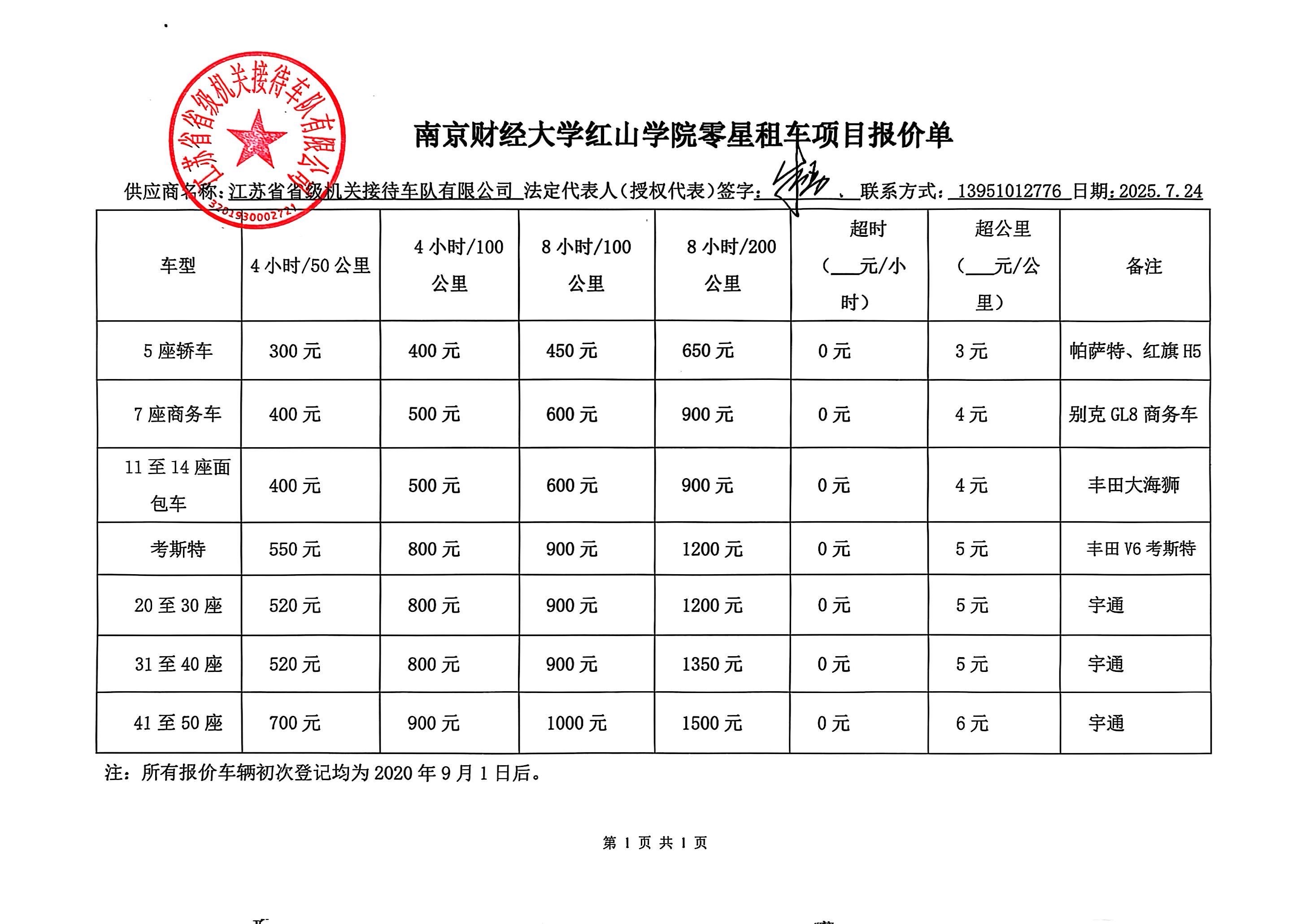 供应商名称:江苏省省级机关接待车队有限公司