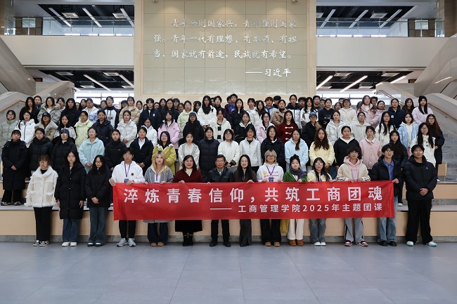 为深学细悟党的二十届四中全会精神,筑牢青年学子理想信念根基,12月3日下午,工商管理学院“淬炼青春信仰,共筑工商团魂”2025年度主题团课在启智1区205教室顺利开讲。工商管理学院党总支书记、院长张太海受邀主讲,党总支副书记王海萍,团总支书记何玉凤,团总支副书记张佳联,团组部门负责人,青璞砺行宣讲团成员,2025年春秋两季134名入团积极分子参加。本次团课由营销2451班辛晨主持。
