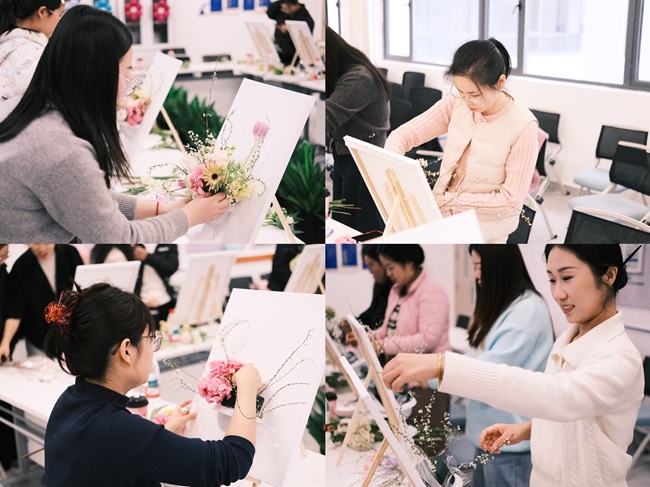 油画插花现场