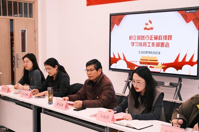 为深入学习贯彻习近平总书记关于树立和践行正确政绩观的重要论述,切实把思想和行动统一到学院工作要求上来,3月18日下午,工商管理学院党总支召开树立和践行正确政绩观学习教育工作部署会,全体党员参会。会议由工商管理学院党总支书记、院长张太海主持。