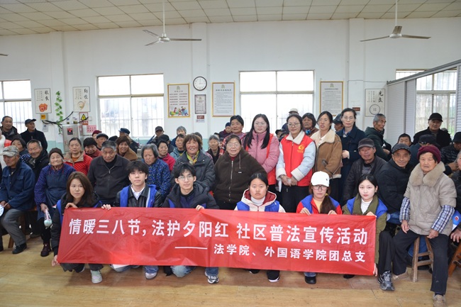 为进一步增强妇女、老年人法治意识,提升反诈防骗能力,3月18日,法学院联合高职园妇联、古柏街道司法所,共同走进古柏街道双沟村,开展“情暖三八节·法护夕阳红”主题普法宣传活动。高职园妇联主席陈诺,古柏街道司法所所长汪璐,法学院团总支书记赵悌芳及“垄上律行普法实践团”成员参加本次活动。