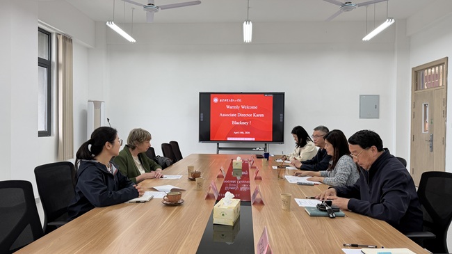 程宏云副院长致欢迎辞,对凯伦·布莱克尼副主任一行的到访表示热烈欢迎,并简单介绍了学院办学特色,希望以此次交流为契机,进一步拓展双方在师生交流等领域的务实合作。