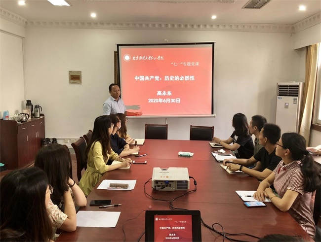 6月30日,红山学院党委副书记、纪委书记高永东在福建路校区面向学工系统党员作题为《中国共产党:历史的必然性》的专题党课,他从近代以来各阶级救亡图存的政治实践的历史出发,阐述了中国共产党成为中国人民和中华民族先锋队、建立中华人民共和国的历史必然性;又从中华人民共和国成立以来党领导建设中国特色社会主义事业的政治实践出发,阐述了中国共产党作为中国特色社会主义事业领导核心的历史必然性。他的党课结合丰富的史料,注重逻辑性,引发听讲者的共鸣。