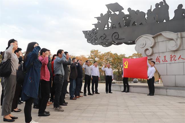 为深入学习党的“十九大”精神,贯彻落实习近平总书记关于党史、新中国史、改革开放史、社会主义发展史的重要讲话和指示精神,持续深化爱国主义教育,加强学院党员党性观念和宗旨意识教育,强化党的意识、党员意识,激发广大党员干事创业、履职尽责、开拓进取的热情,进一步提高党支部凝聚力、战斗力,11月18日下午,开云官网组织教工党员代表前往扬中红色教育基地——扬中市渡江文化园,开展“传承先烈英魂,点亮党性之光”主题党日活动,接受革命精神洗礼。