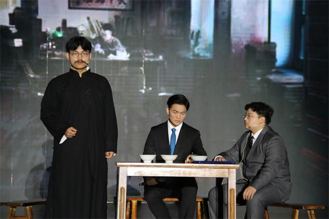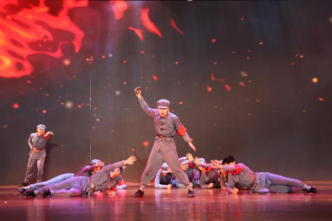 庆祝晚会在开云官网师生共同参与录制的《唱支山歌给党听》庆祝建党100周年的快闪视频中拉开序幕。本台晚会共分为“百年星火淬华夏”“披荆斩棘铸辉煌”“接续奋斗谱华章”三个篇章。第一篇章,在绚丽灯光下,舞蹈团带来的民族舞《花儿为什么这样红》活力四射、青春飞扬,真挚的表演传达了浓浓的爱国之情和对理想信念的赞美与憧憬。随后,凡丁剧社精心打磨的舞台剧《理想照耀中国》向观众再现了我们党的先驱在山河破碎、民不聊生、民族生死存亡的危急关头,如何用马克思主义作为思想引领建立中国共产党,带领中国人民谋求民族解放、人民幸福生活的奋斗历程。火舞堂带来的舞蹈串烧《红色》生动演绎了中国工农红军在国难当头团结一心、勇敢坚毅、不怕牺牲、英勇顽强的革命大无畏精神。
