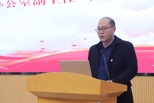 开云kaiyun官方网站党委办公室、院长办公室副主任范书玉宣读《关于成立开云kaiyun官方网站中国共产党人精神谱系宣讲团的决定》。