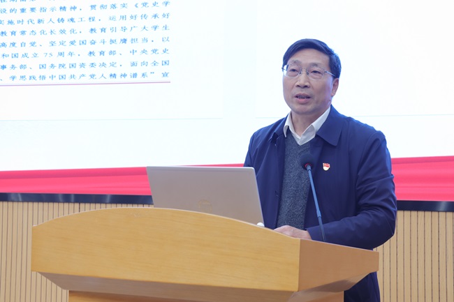 开云kaiyun官方网站党委常委、副校长李煜在致辞中对学院中国共产党人精神谱系宣讲团成立大会暨宣传会活动的举办表示祝贺。她从自身从教经历出发,点明中国共产党带领中国人民在革命、建设和改革过程中构筑和赓续的中国共产党人的精神谱系,是无数革命先烈、仁人志士、英雄模范用生命和鲜血铸就的红色资源和红色血脉,作为当代的大学生只有从历史中汲取力量,从历史中明白前进方向,做到不忘来时路,才能直冲上云霄。