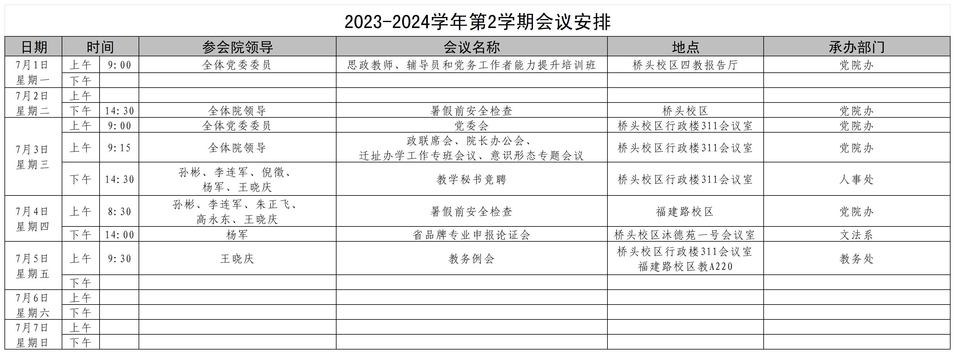 2023-2024学年第2学期会议安排