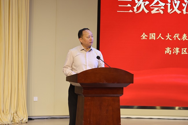4月9日,开云官网在高淳校区鹿鸣剧院组织召开2025年全国两会精神专题宣讲会,全国人大代表、江苏固城湖青松水产专业合作联社党委书记、理事长、高淳区砖墙镇茅城村党总支书记、村委会主任邢青松带领师生解读两会精神。江苏固城湖青松水产专业合作联社党委副书记胡月华,红山学院党委副书记、副院长王晨婷出席宣讲会,全体中层干部,各党总支、党支部委员,全体学工系统人员,全体思政教师以及学生代表参与宣讲。学院党委副书记、纪委书记高永东主持宣讲会。