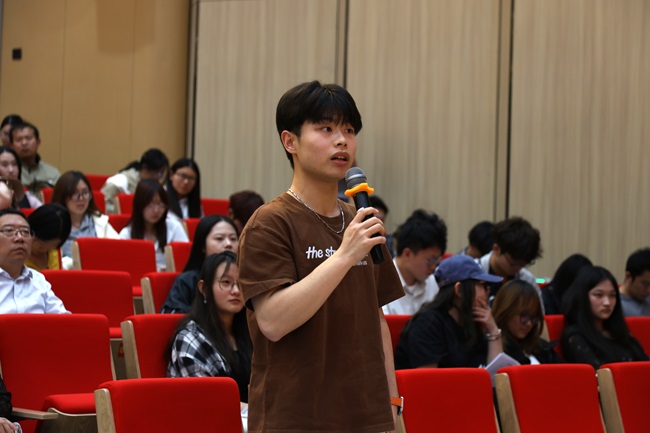 宣讲会后,邢青松代表与大学生们展开互动,同学们围绕两会精神踊跃向邢代表展开提问,体现了当代大学生对两会精神的关心和思考。邢青松代表认真倾听同学们的问题,从专业的视角,结合亲身经历,对同学们的疑问层层剖析,耐心解答,现场气氛热烈。