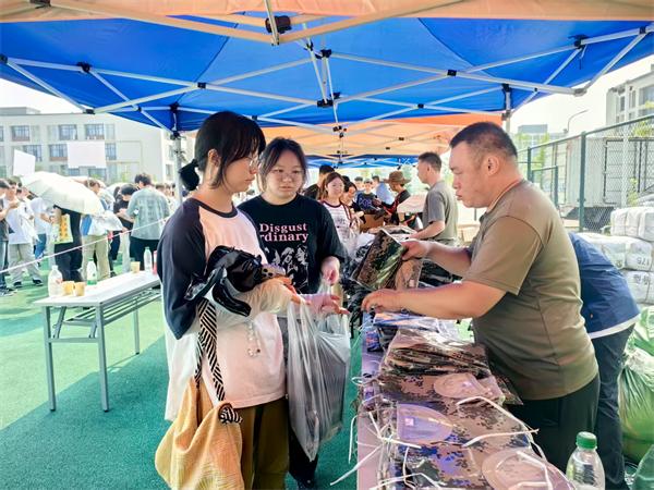 动员会结束后,学校有序组织新生领取军训服装。在工作人员的引导下,新生们依次排队,核对信息,顺利领取到属于自己的军训服装。拿到服装的新生们迫不及待地进行试穿,穿上迷彩服的他们瞬间增添了几分军人的英姿飒爽,对即将开始的军训生活充满了期待。