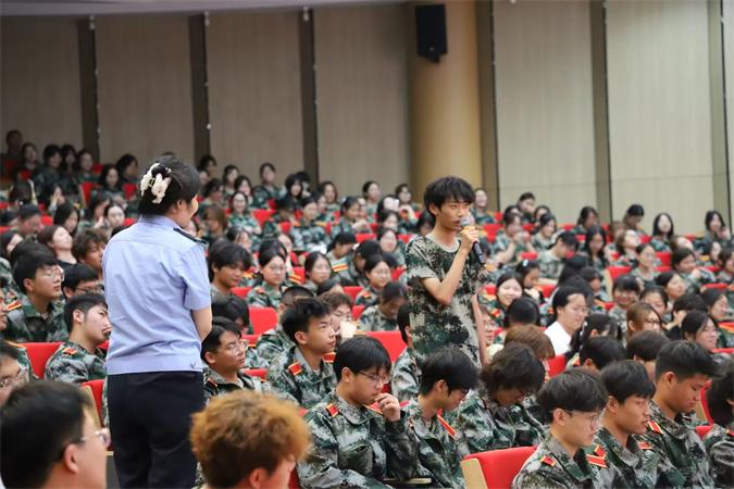 随后,徐玲娟警官以“构建反诈安全网—让青春无诈”为主题,通过PPT开展深入的反诈宣讲。她结合真实案例,详细剖析网络刷单骗局、冒充公检法诈骗、交友诈骗等针对大学生的典型诈骗手段,指出诈骗分子常利用新生初入校园、社会经验不足的特点,通过伪装话术骗取信任。宣讲过程中,徐警官还设置了提问环节,以选择题形式与新生互动问答,通过“实战式”提问帮助新生快速掌握反诈知识,加深对诈骗手段的辨别能力。同时,她着重提醒新生,务必保护好个人隐私信息,对涉及钱财的交易保持高度警惕,遇可疑情况及时联系学校保卫处或警方。