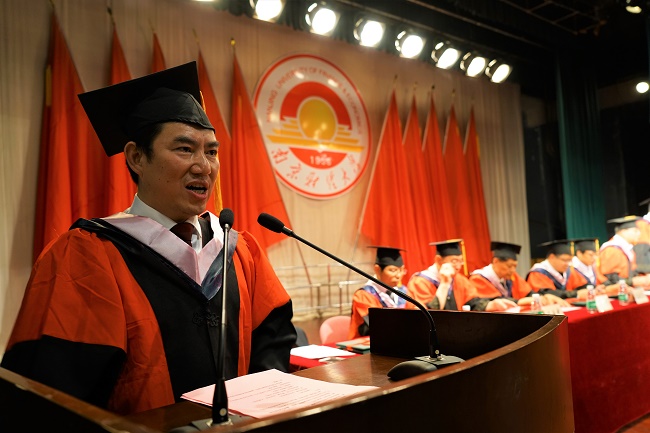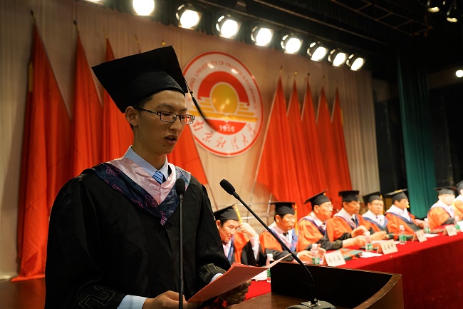 金融1357班葛文康同学和会计1351班王天颖同学作为学士学位获得者代表分别发言。葛文康同学感谢母校塑造了他勤奋朴实的品质,培育了他积极向上的人生观,他表示无论何时都不会辜负母校的希望,锐意进取,也希望母校的明天更加灿烂辉煌。王天颖同学回忆了在红山学院学习、生活的点滴,表达了依依不舍的离别之情,同时她表示对未来有着坚定的信心,勾勒了对未来的美好蓝图。