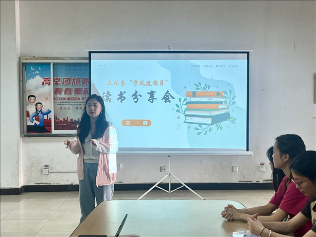 立身以立学为先,立学以读书为本。为营造良好的读书习惯和学习氛围,助力学生拓宽阅读视野、提升学术素养、丰富精神世界,在书香的浸润、思想的碰撞中厚植法治信仰,文法系于5月16日下午在桥头校区“一站式”学生社区开展了“以书润心,与法同行”读书分享会。本次活动由文法系辅导员高涵老师主持,法学专任教师殳勉、杨亚婕受邀出席,法学专业学生积极参与。