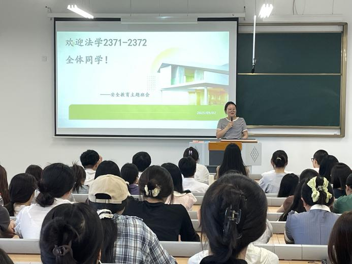 9月2日,法学院组织2023级转本新生召开首次主题班会。班会伊始,全体新生集中观看了反诈专题教育片,通过真实案例提升安全防范意识。随后,祖羞月老师就学业规划与校园生活等方面进行了细致讲解。班主任彭乐乐老师在会上寄语新生,勉励大家珍惜大学时光,尽快适应新环境,努力学习专业知识,为未来职业生涯奠定坚实基础。法学院党总支副书记陈萱出席会议并致辞,她代表学院欢迎新同学的到来,并就学业规划与职业发展作了专题发言。