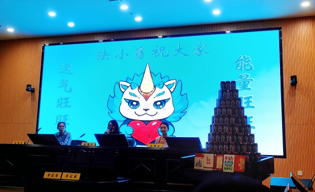 随后,陈萱副书记为同学们送上温情寄语。她围绕“明确方向、做好规划”核心,勉励大家无论选择法考、考研或就业,都需尽早确立目标、科学制定计划,并提醒同学们在冲刺阶段既要坚定信心、积极准备,也要注意调节身心、保持良好心态。讲话最后,陈书记代表学院向同学们赠送了寓意“运气旺旺、能量旺旺”的能量补给礼物——旺仔牛奶和励志明信片,为学子们加油鼓劲,现场暖意融融。