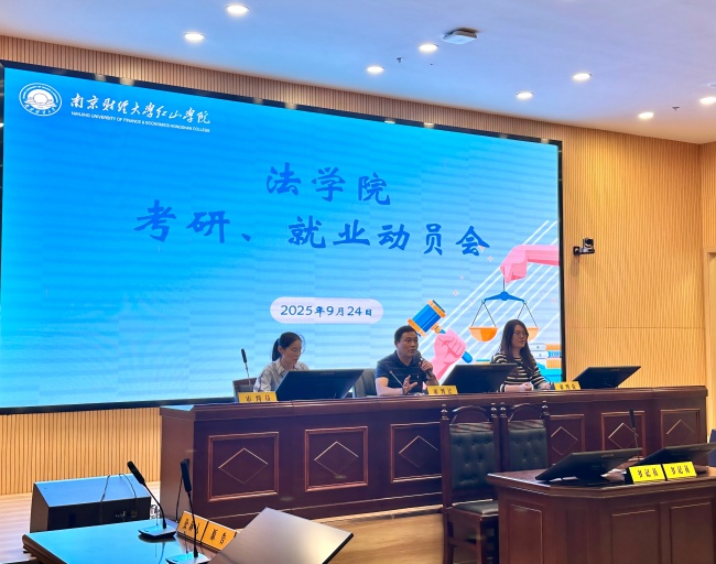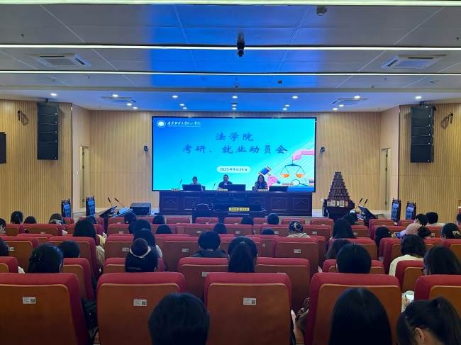 为帮助2026届毕业生科学规划未来发展方向,扎实做好升学与就业准备,9月24日下午,法学院在模拟法庭会议室隆重召开2026届毕业生考研、就业动员大会。会议由学院党总支副书记陈萱主持,法学院院长李磊、团总支书记赵悌芳、毕业班辅导员高涵出席,为即将步入关键阶段的学子指点迷津、鼓舞信心。