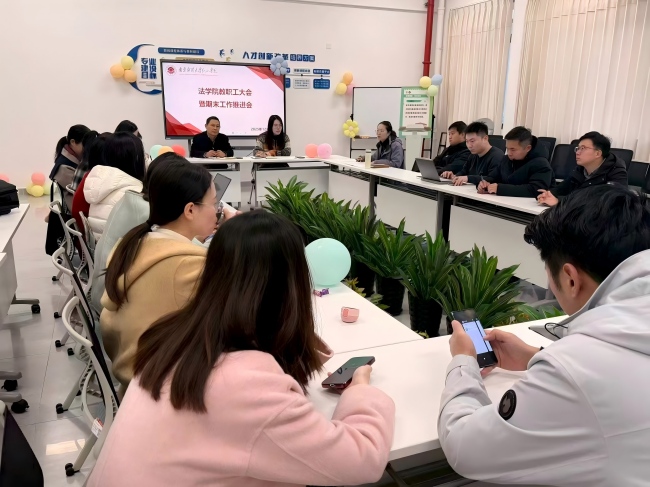 为全面部署期末阶段各项工作,确保学期任务圆满完成,法学院于12月10日中午在智圆楼B329会议室召开全体教职工大会暨期末工作推进会。