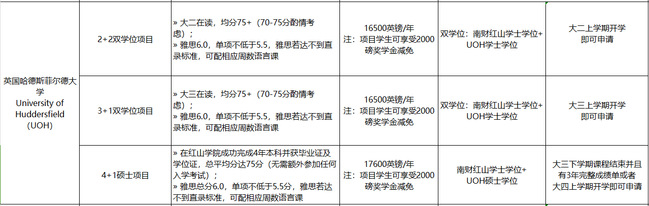 学院与哈德斯菲尔德大学合作形式包括2+2、3+1、4+1等。