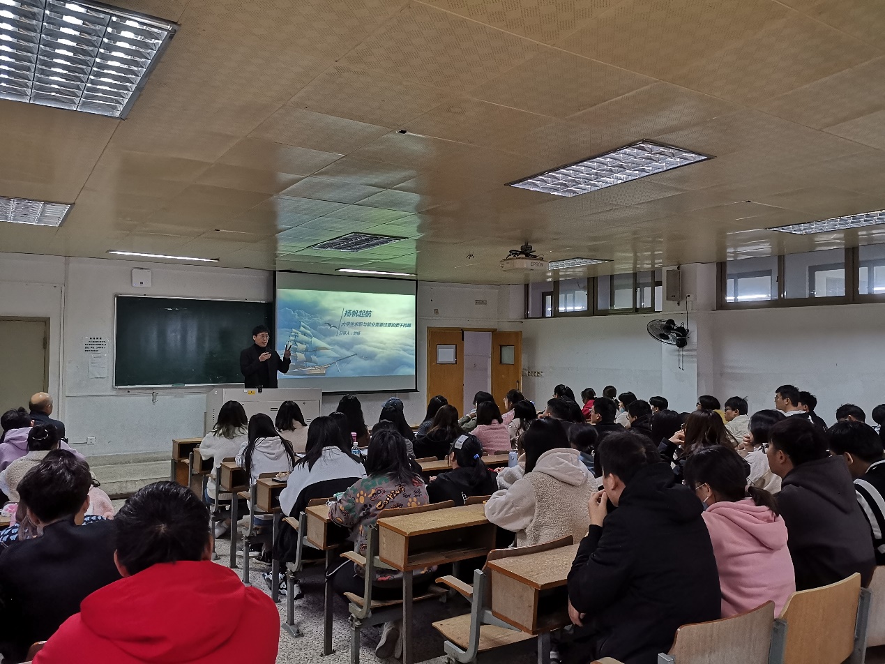11月10日下午,应国际经贸系邀请,江苏海外国际经贸有限公司总经理刘畅在福建路校区J2-103教室作题为《大学生求职与就业需要注意的若干问题》的讲座。该讲座为国际经贸系“就业创业活动月”拉开了帷幕,讲座由国际经贸系主任刘志国主持。国际经贸系两个校区的同学通过线上、线下两种形式参与了本次讲座。