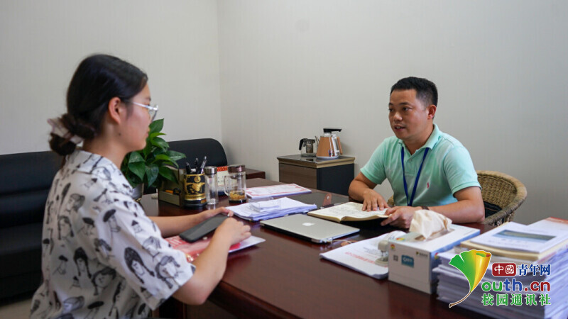 实践队员贺雯燚采访黄沙镇党委书记罗凯(中国青年网通讯员刘佩瑶摄)