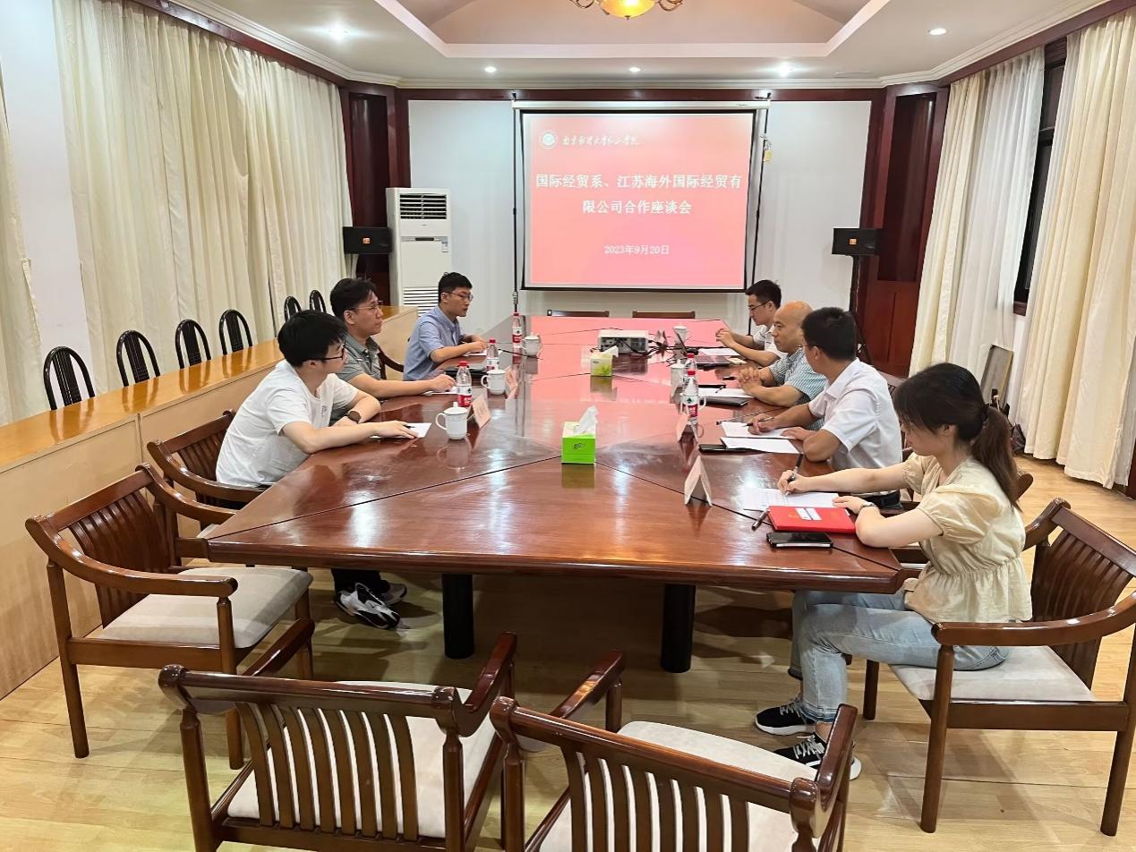 9月20日上午,江苏海外国际经贸有限公司总经理刘畅、外贸经理李冬林、外贸助理庄鹏程一行3人,应邀来我系开展教学实践基地建设和校企合作调研交流。国际经贸系系主任刘志国、系党总支副书记陈玉龙、教务处处长助理薛帅通和系学工秘书宋婧参加交流。座谈会在桥头校区沐德苑第一会议室举行,系党总支副书记陈玉龙主持会议。