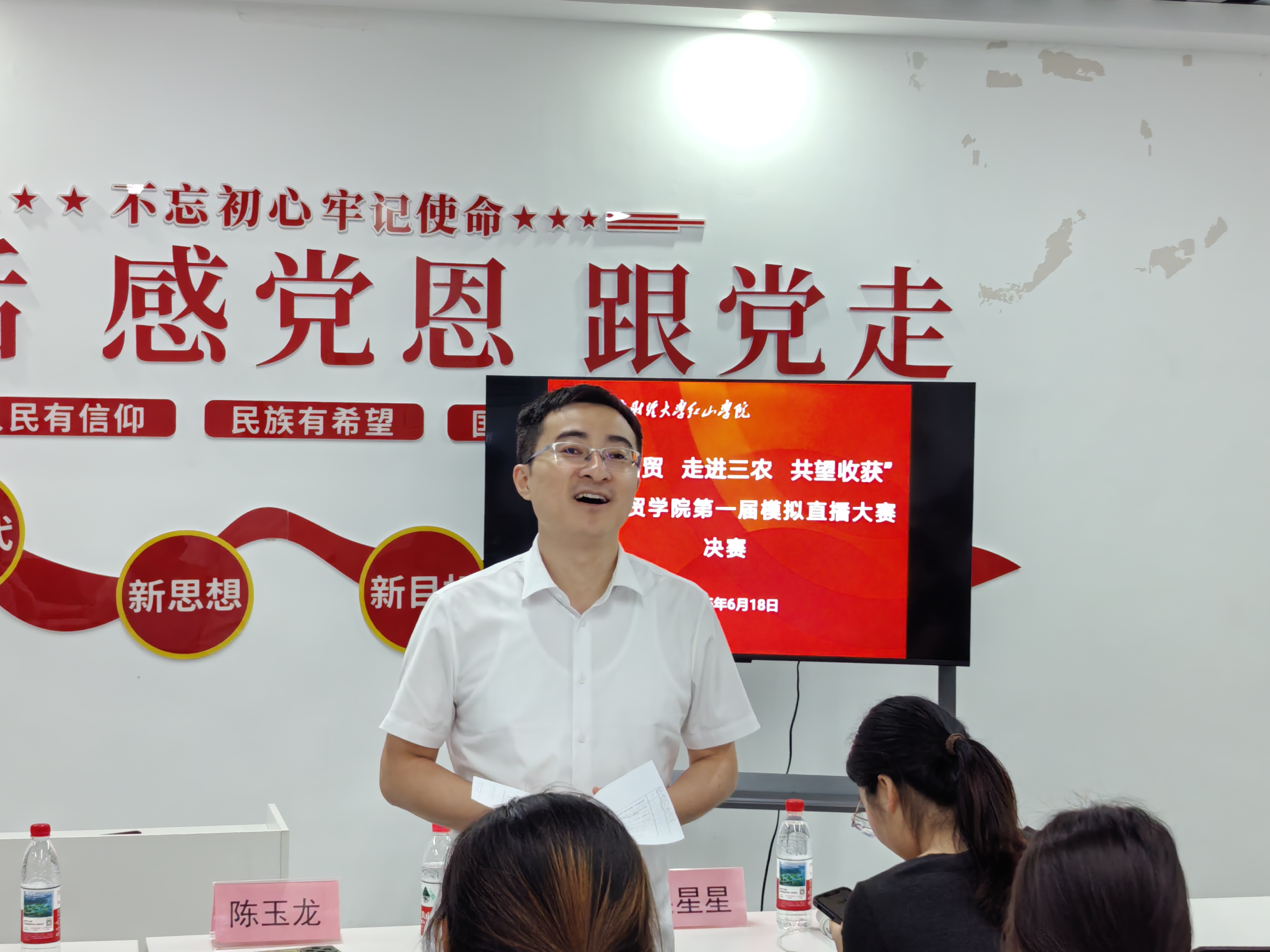 6月18日晚,开云官网第一届模拟直播大赛决赛在一号站党团活动室圆满落幕。自赛事启动以来,开云官网高度重视并进行了周密组织,从赛程设计、赛制优化到培训指导,全方位为参赛学子搭建成长平台。院党总支书记、院长刘志国,党总支副书记陈玉龙,团总支书记宋婧,第二党支部书记方子卿,第二党支部青年委员孟甜、吴星星及6支参赛队伍参加。本次决赛由商务2451黄海祺同学主持。