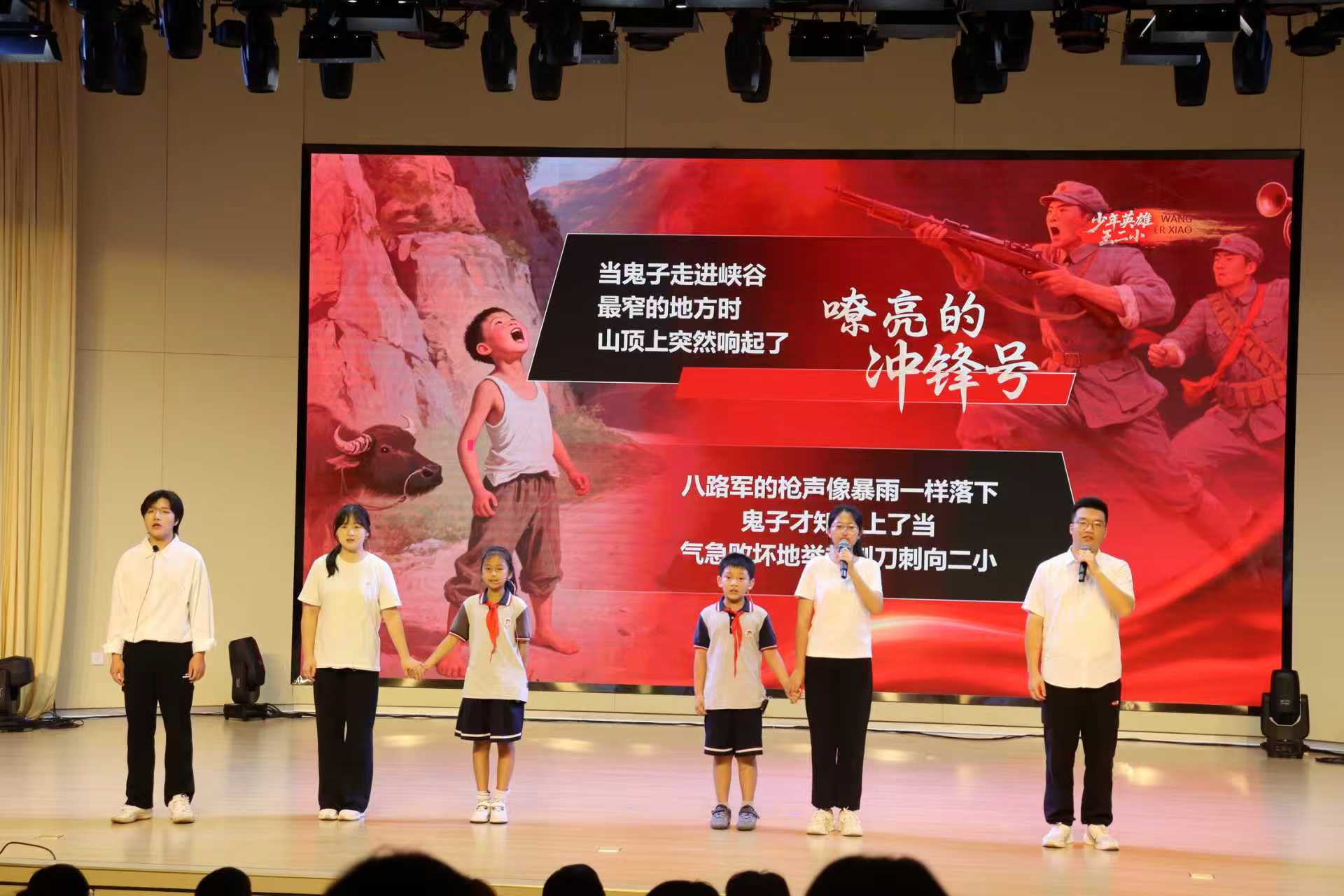 舞台上,大小学生手拉手站定,悠扬旋律响起,将王二小的英雄故事娓娓道来。稚嫩与清亮的歌声交织,仿佛带我们回到了烽火年代,那个叫王二小的少年,以稚嫩之肩扛起重大责任。他的勇气,至今仍叩击心灵。此次演出不仅让红色基因浸润童心,更搭建起校地互助桥梁,为志愿服务注入文化传承新活力,彰显青年学子担当。