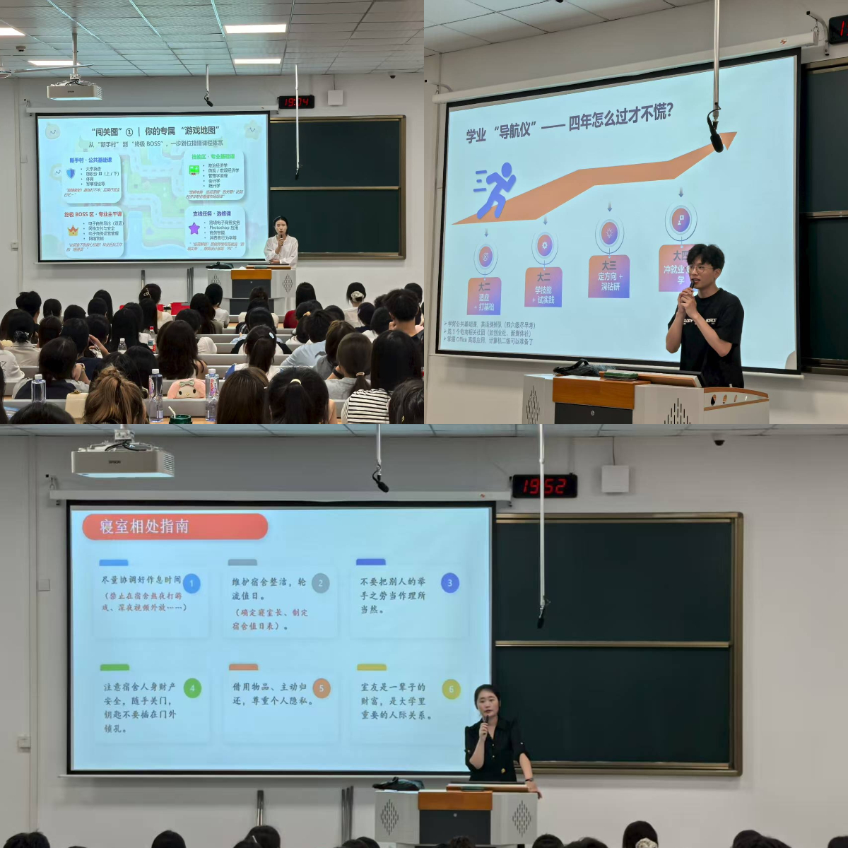 为帮助新生尽快适应大学生活、明确学习方向,9月7日晚,国际经贸学院于智圆A区103教室和启智2区210教室同时开展了新生“开学第一堂班会”主题活动。新生辅导员们围绕理想信念教育、学业规划指导、人际交往指南、安全与心理健康教育这四大核心内容进行了细致讲解。新生班主任们则结合专业特色,为新生详细介绍了课程体系和培养方案,鼓励新生提前制定学习目标,积极参与学科竞赛与实践活动,为未来发展打下坚实基础。