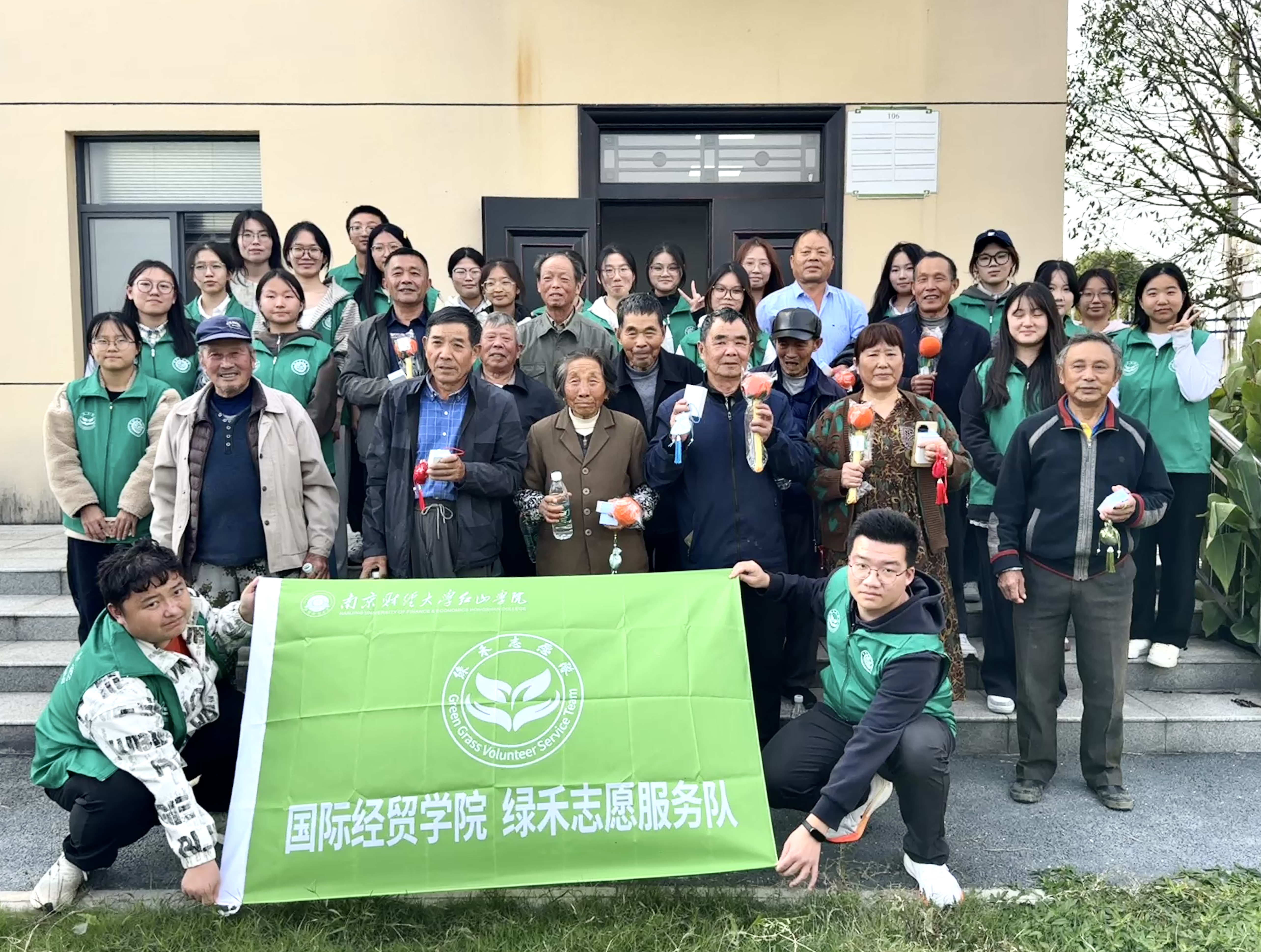绿禾志愿服务队与老人合影留念