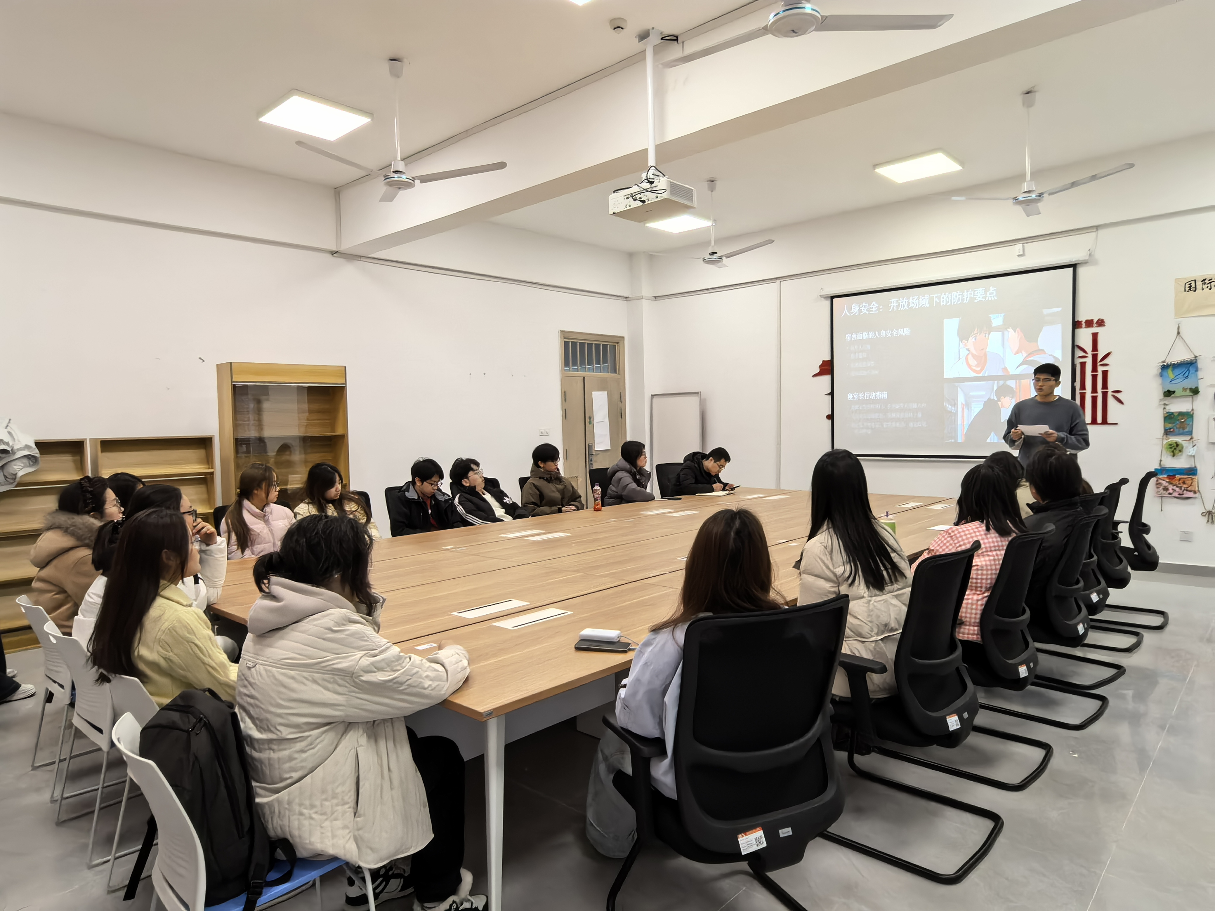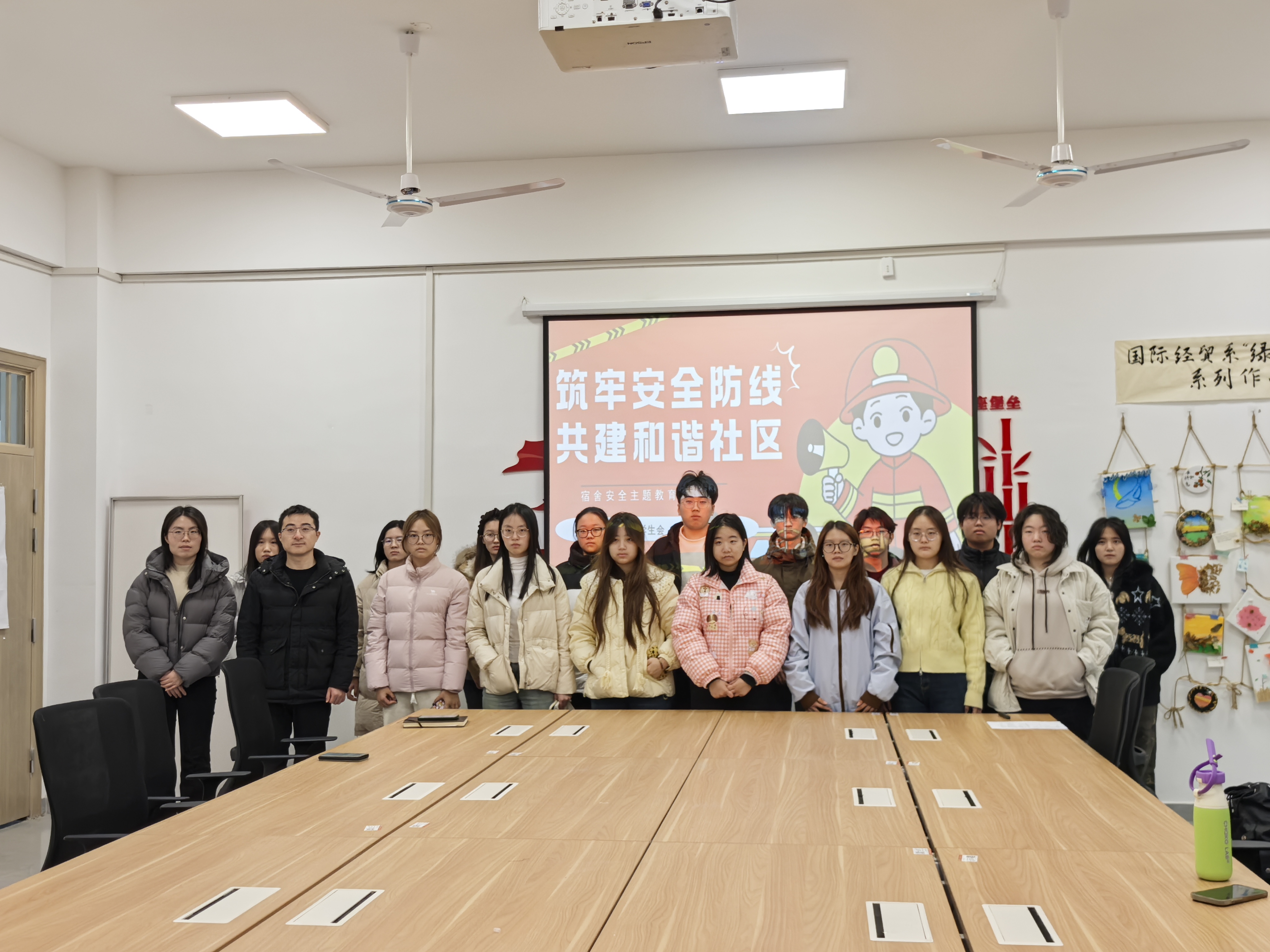 为强化学生宿舍安全管理,提升学生的安全意识与应急处置能力,营造安全和谐的住宿环境,院学生会于12月3日在智圆楼221活动室举办“筑牢安全防线,共建和谐社区”宿舍安全主题专项宣传教育活动。院党总支副书记陈玉龙,团总支书记宋婧及25级寝室长代表们到场参加,共同学习安全知识、提升防护技能。活动由国际经贸学院学生会王一凡同学主持。