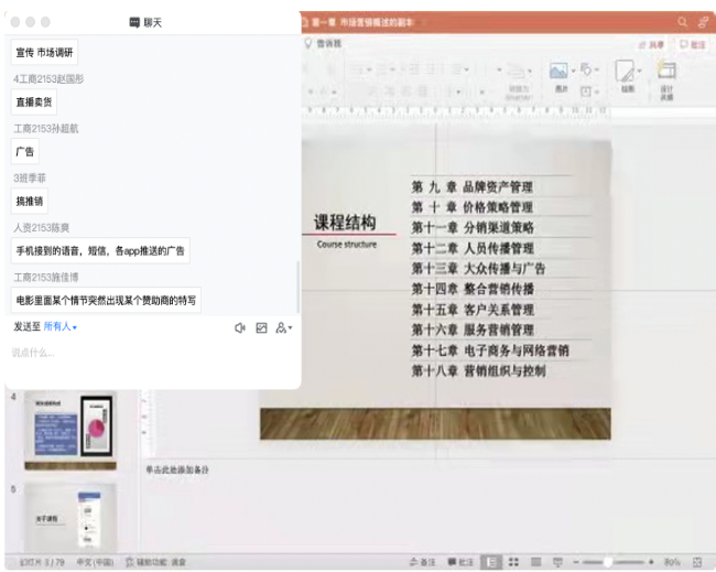 开学前两周,工商管理系33位教师共开课81门次,根据任课教师的个人习惯和实际教学的需要,教师们主要通过腾讯会议、QQ群课堂、雨课堂、学习通、慕课等教学工具开展在线直播授课。任课教师通过考勤签到、布置课前预习内容、课堂讲解、线上问答、随堂测验、课后作业等较好的完成了教学任务,学生积极参与互动、学习积极性较高,教学氛围和教学效果良好。其中《创新创业基础》刘颖老师通过弹幕与同学互动,课堂气氛较为活跃,取得了较好的效果。