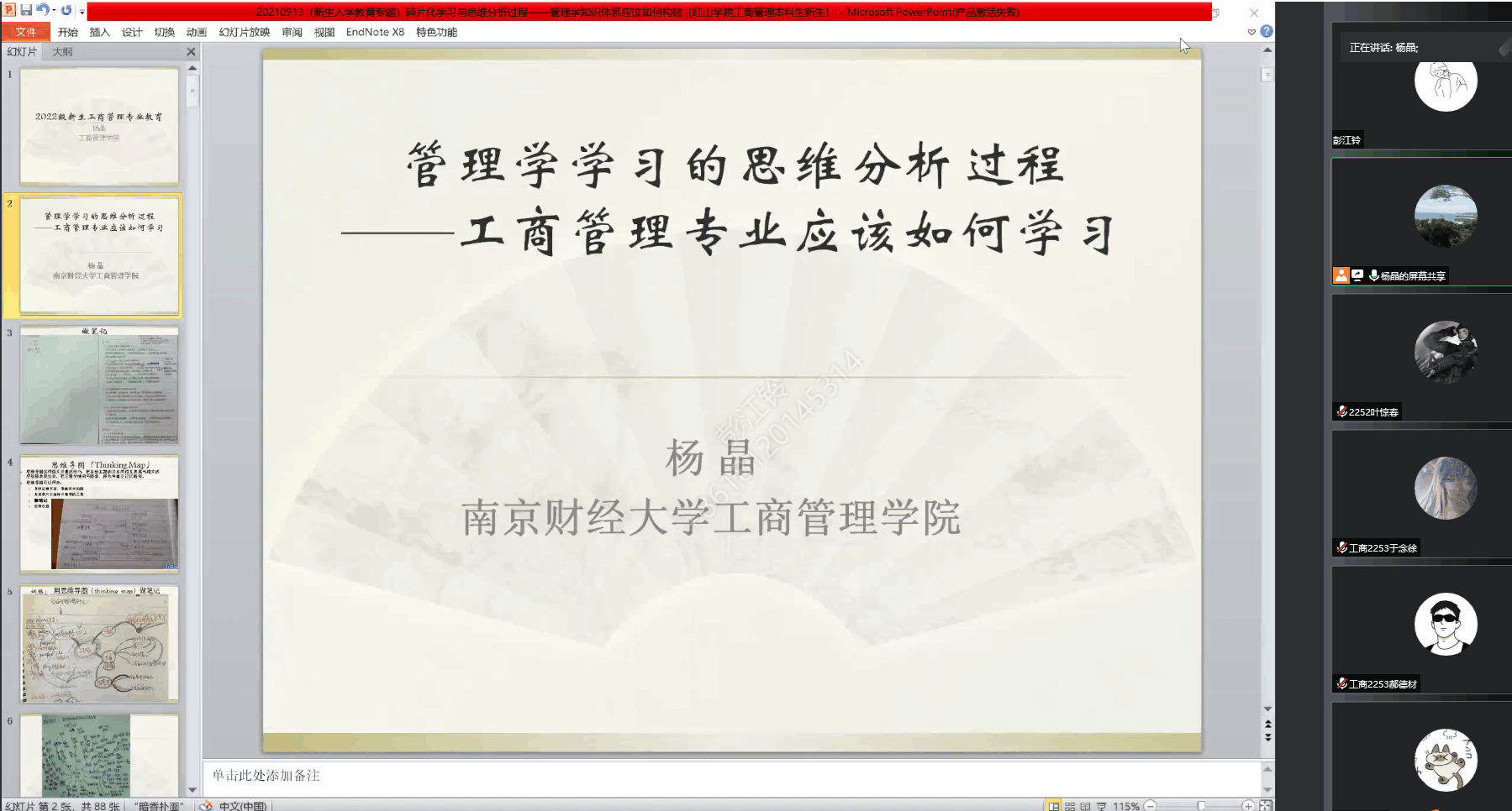 9月5日上午,我系通过腾讯会议开展2022级新生入学教育之“专业思想教育”专题讲座。讲座由工商管理系教学秘书李晶莹老师主持,开云kaiyun官方网站工商管理系工商管理专业负责人杨晶老师、物流管理专业负责人金汉信老师、人力资源管理专业负责人李召敏老师和市场营销专业负责人张敏老师应邀主讲,我系2022级全体辅导员和新生线上参与讲座。