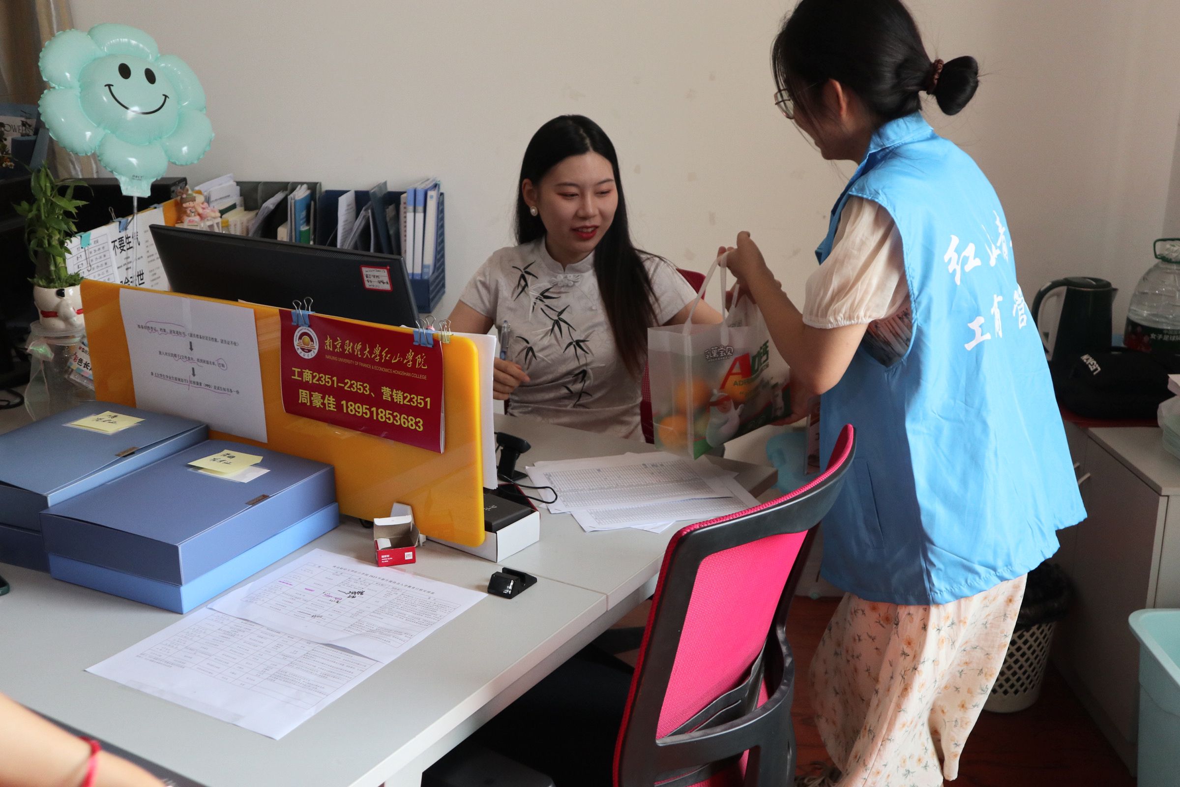 辅导员时刻坚守岗位,用心陪伴和服务。在系部新生报到处现场,吕亦怡、费晶和周豪佳三位辅导员老师耐心为前来报到的新生解答疑惑,协调现场秩序,解决各类问题,帮助新生同学们有序地完成了一系列入学报到手续。新生报到当天恰逢教师节,工商管理系为仍然坚守在一线的辅导员老师致以节日的祝福,送去节日的关怀。