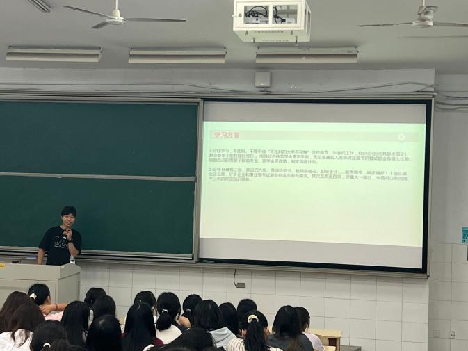 为增强大学新生生涯规划意识,指导其及早做好就业准备,促进高质量充分就业,9月14日上午,工商管理系各专业在桥头校区召开成人成才教育主题班会。本次班会以专业为单位,特邀工商系优秀学长学姐进行成人成才朋辈教育经验分享,各班级班主任老师主持班会,全体2023级新生参会。