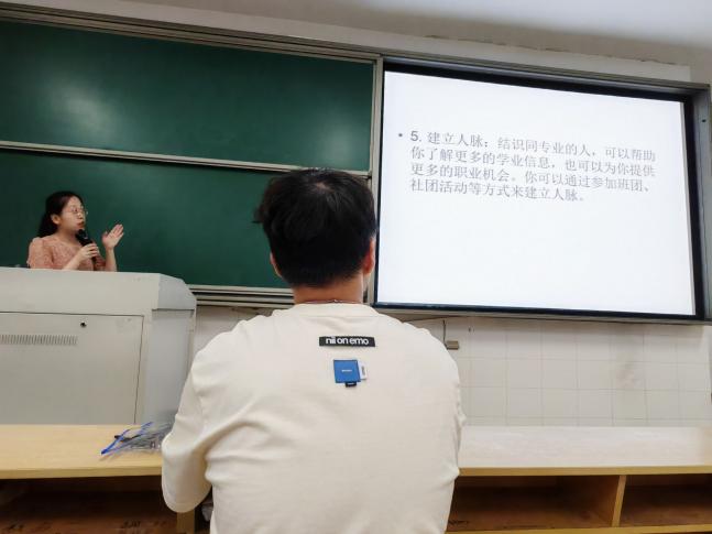 首先,各专业班主任进行职业生涯规划引导。其中,班主任程娇娇老师从自我评估、环境分析、计划与实施、评估与调整四个方面,引导同学们做好职业规划。她鼓励同学们在大一试探期内了解自己专业,积极竞选班干部,积极参与社团活动;在大二定向期巩固专业知识,考取专业证书,并通过专业实践与理论知识相结合的方式提升个人素养;在大三质变期明确毕业方向,根据个人发展实况更新职业规划计划;在大四分化期主动参与社会实习工作,提高自身核心竞争力。
