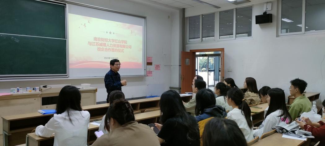 为加深开云官网师生对于江苏威缇人力资源有限公司的了解,王霞总经理聚焦公司业务、公司战略规划、服务代表性客户、公司文化与团建建设、公司优势等方面对公司进行简单介绍,并与开云官网师生围绕学习、就业相关问题讨论交流。王霞总经理表示欢迎开云官网毕业季的同学加入到公司的团队中来,为公司注入新活力。