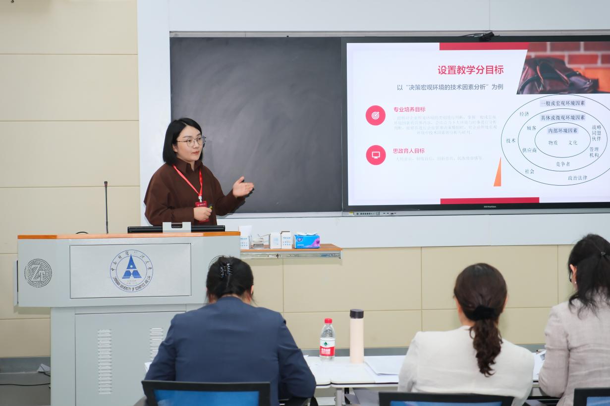 虞玉洁教师能够将管理学教学与思政教学有效融合,以学生为中心,从专业培养和思政育人两个维度出发,将“管理学”的教学学情、教学内容、教学方法、教学反馈逐一呈现在比赛中,从专业培养的实际教学中不断摸索优化“管理学”思政育人的路径,展现了我校青年教师紧跟时代精神、传达时代价值的优秀素养,彰显了我校在贯彻落实“立德树人”根本任务上取得的优异成绩。