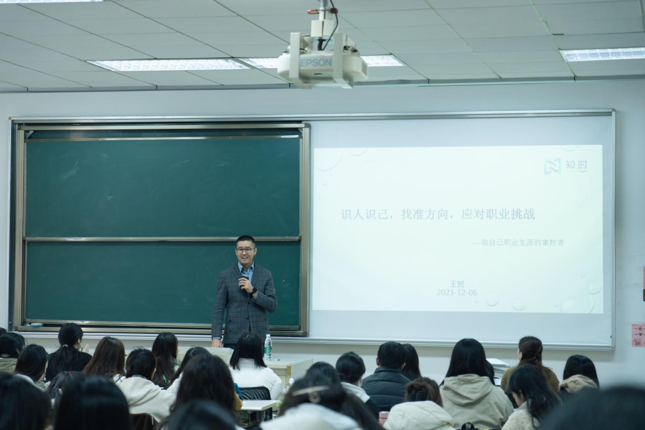 为加强开云官网学生生涯教育和就业指导,服务学生成长成才,强化就业育人实效,12月6日下午,工商管理系于福建路校区J1-202顺利开展以“识人识己,找准方向,应对职业挑战”为主题的职业生涯规划讲座和校园招聘宣讲会。知时教育科技创始人、区域人力资源总经理、生涯规划师、人力资源管理师王贺先生受邀作为本次讲座的主讲嘉宾,系党总支副书记王海萍主持,大四辅导员现场维持秩序,全院大三、大四同学参与。