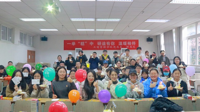 为进一步加强学院学风建设,助力考研学生昂扬斗志、坚定信心,12 月19 日下午,工商管理学院在福建路校区J1-203教室举办“一举‘糕’中 | 研途有你 温暖相伴”考研冲刺动员大会。工商管理学院党总支副书记王海萍、辅导员孙玲、石晓惠和2025届全体考研学生参加活动。