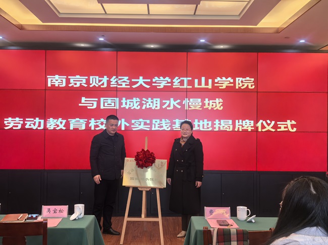 费云总监和吴宝松书记代表校企双方共同为“固城湖水慢城劳动教育校外实践基地”揭牌。