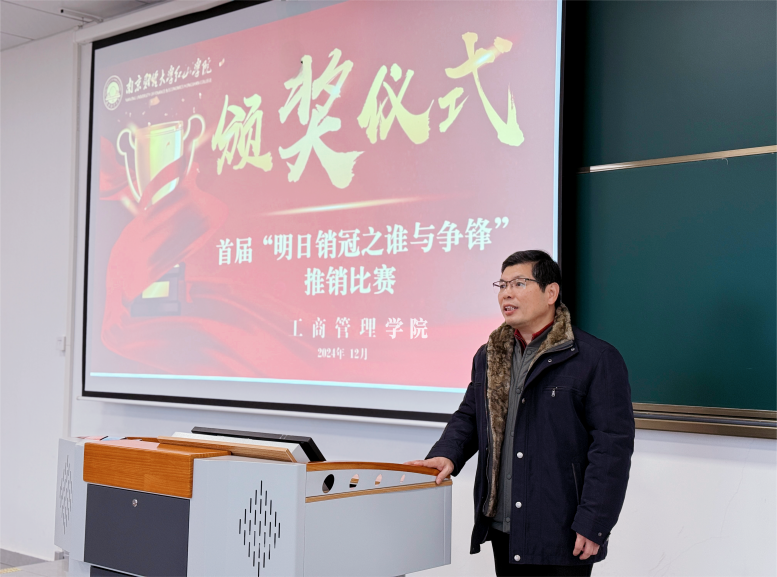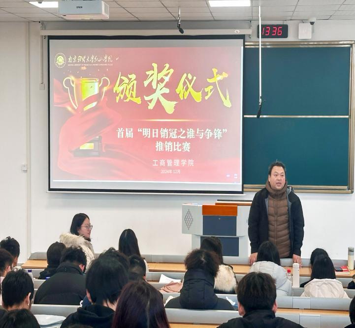 为深刻贯彻创新发展理念,牢牢把握新时期高质量发展的要求,积极培养大学生的创新意识、创造能力和创业精神,激发大学生创意思维,工商管理学院于12月中旬举办了首届“明日销冠之谁与争锋”推销比赛。比赛以“乡村振兴:激发新质生产力,共筑高淳繁荣梦”为主题,旨在引领学生们深切融入南京市高淳区的经济发展脉搏之中。本次比赛由王玲老师、陶俊老师、张敏老师、虞淑云老师担任评委老师。
