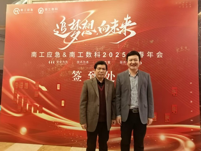 1月17日下午,“追梦想 向未来”南工应急&南工数科2025新春年会在南京浦口区御锦天大酒店成功举办。工商管理学院党总支书记、院长张太海教授受邀参加,工商管理学院教师王安娜陪同参会。