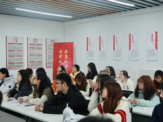 工商管理学院辅导员方硯琳老师向在场的同学介绍,学院成立“一职为你”就业教育工作室旨在为同学们搭建起沟通的桥梁,为大家答疑解惑。