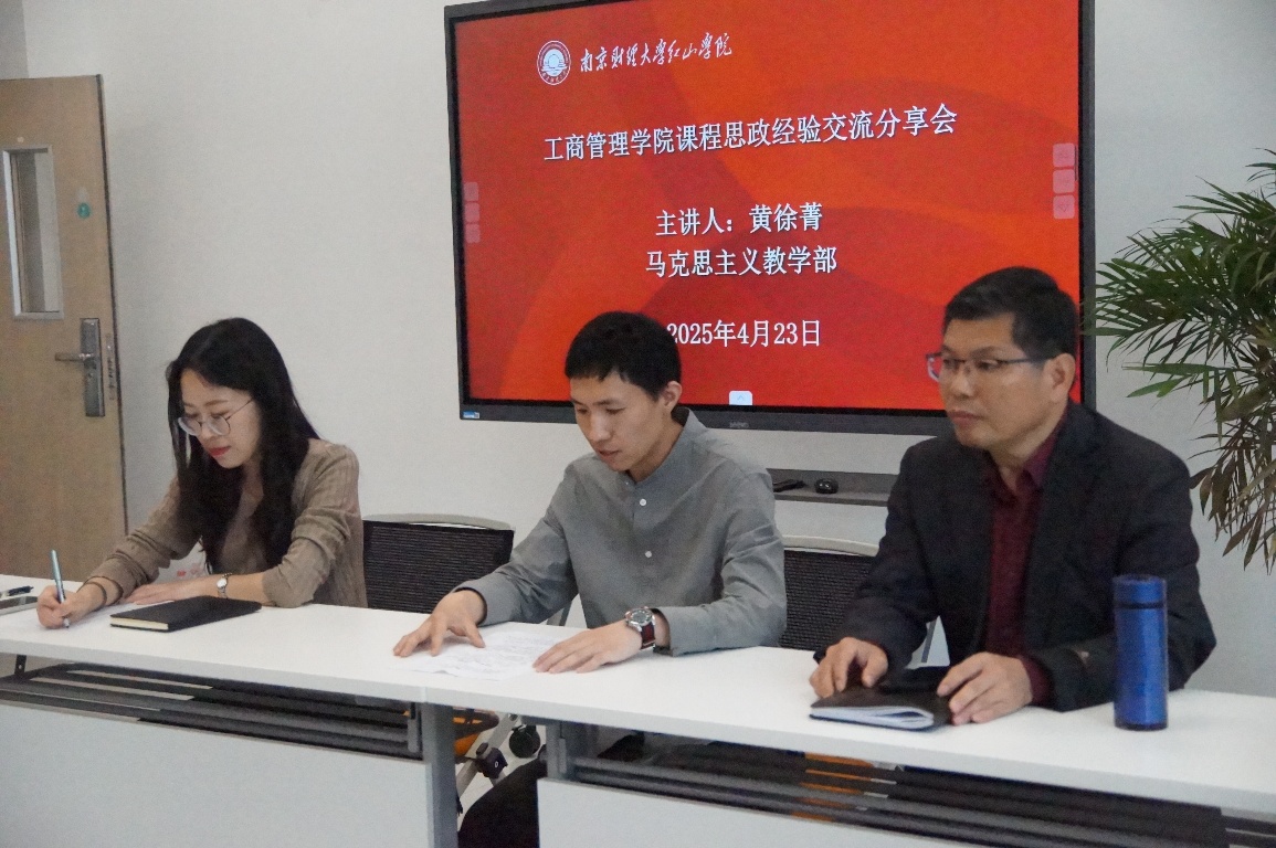 为落实立德树人根本任务,进一步提升教师课程思政建设意识和能力,推进课程思政高质量建设。4月23日周三下午15:00,在智园楼B区429会议室,工商管理学院举办“课程思政经验分享交流会”。会议由工商管理学院党总支书记、院长张太海教授主持,马克思主义教学部黄徐箐老师担任主讲嘉宾,工商管理学院全体教职工参加。