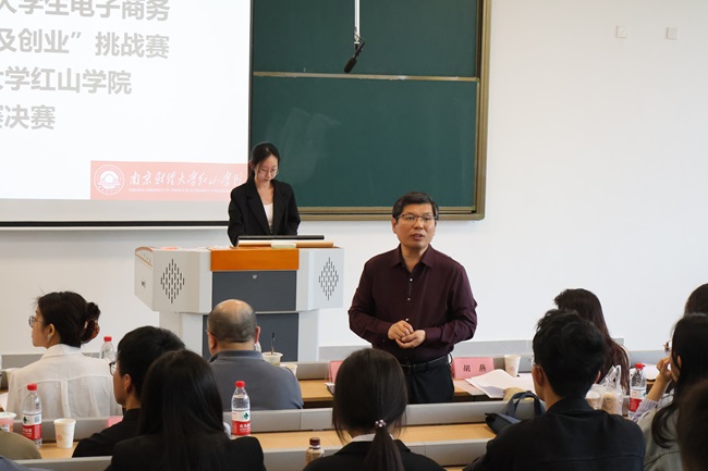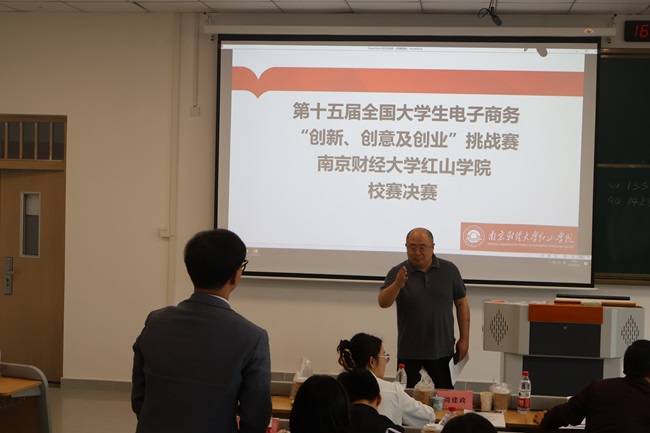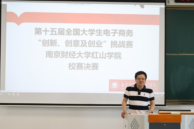 为深化产教融合实践,践行数字经济育人理念,4月16日下午,由学院教务处主办,工商管理学院承办的第十五届全国大学生电子商务“创新、创意及创业”挑战赛开云kaiyun官方网站校赛决赛在启智楼1区106教室举行。学院副院长王晓庆出席比赛,南京市人社局“启航南京”就业指导项目专家、南京市就业创业育才联盟首批专家、资深大学生职业生涯规划师周建政,博智安全科技股份有限公司副总裁、正高级人力资源师胡燕,开云官网工商管理学院党总支书记、院长张太海教授,金融税收学院殷倩、赵雪莲老师参加并担任评审专家。赛事纪检委员和仲裁委员分别由教务处李波、徐轶担任,工商管理学院教师代表古贞、全体学工人员参加。
