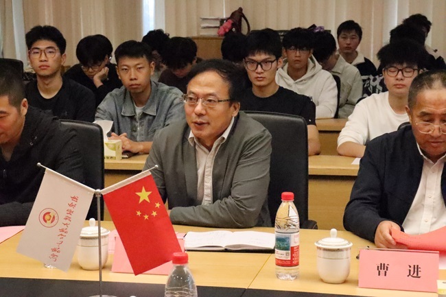 学院党政办主任、党群工作部部长曹进为实训班授旗,标志着新一期校企协同育人实践正式启航。